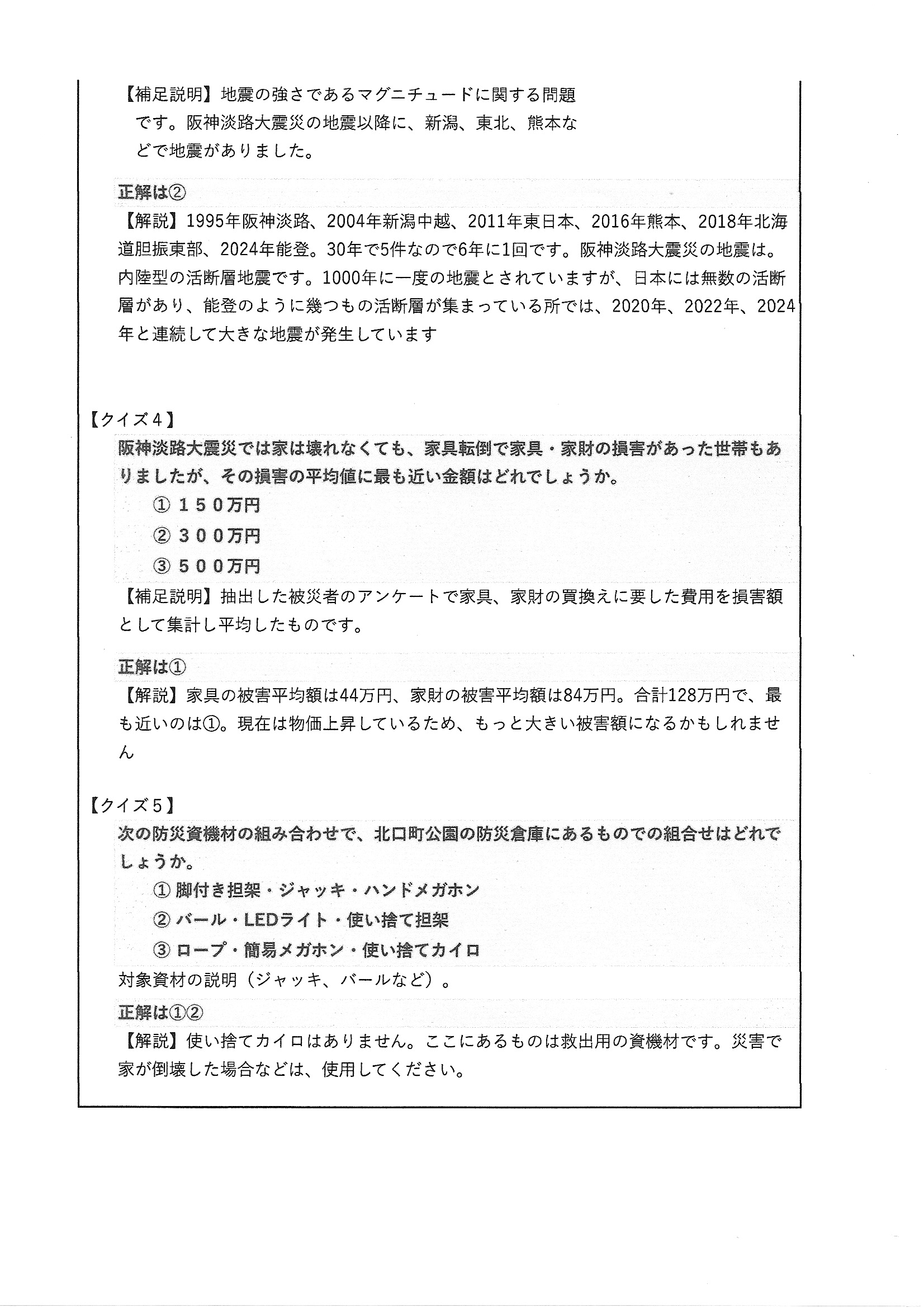 11月16日(日)にシン・きたぐちまつりで防災クイズを行いました。