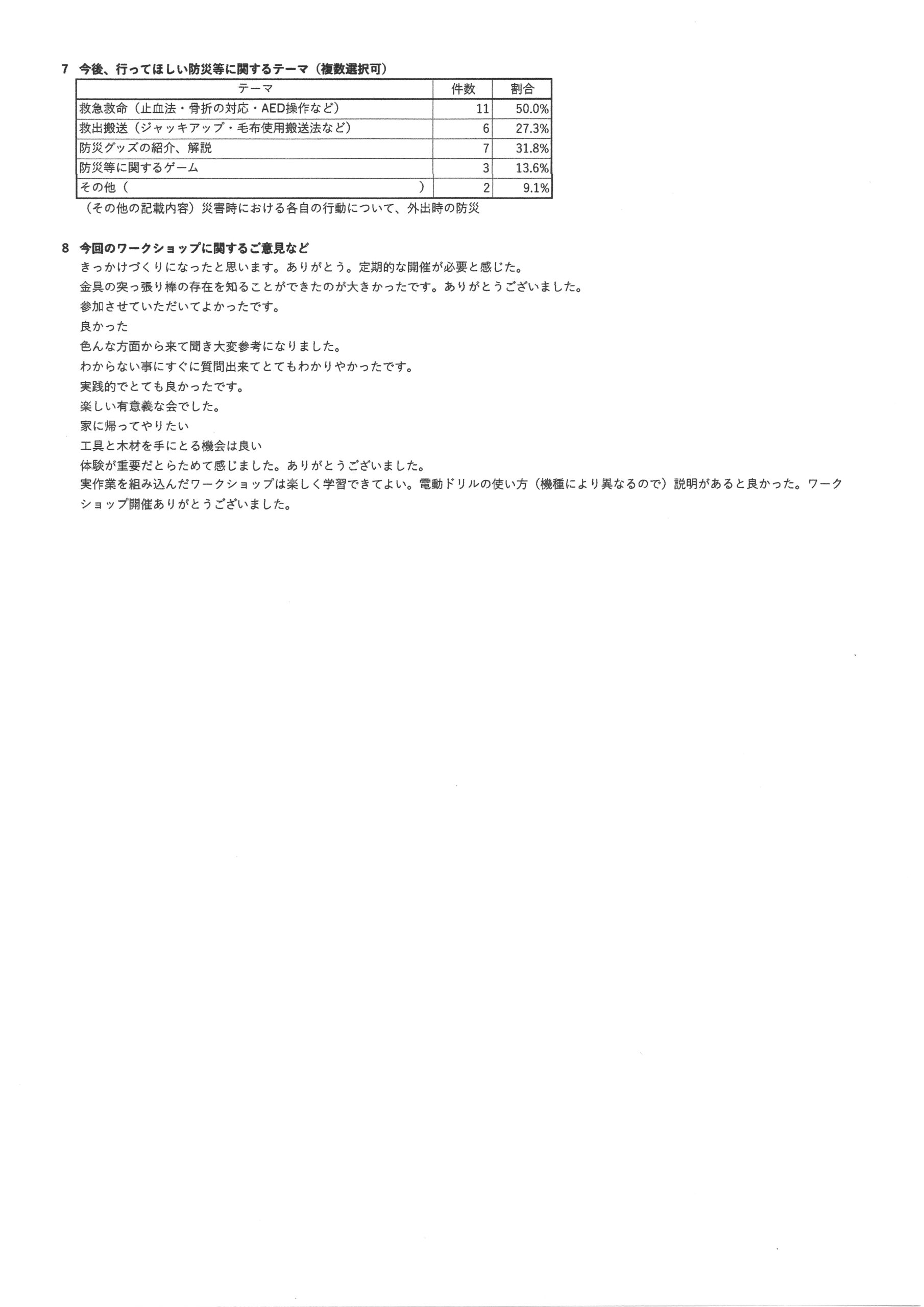 10月5日(日)に行ったワークショップで家具固定状況に関するアンケート結果☆家具別では、冷蔵庫を固定している方は残念ながら一人だけでした。 ☆食器棚の固定は過半数を超え、比較的高い割合です。但し、より効果の高いL字金具で釘どめしている方は少なかった。 ☆詳しくは添付資料をご参照ください。 ☆家の構造、壁や天井の強度により、L字金具で固定できない場合など、どのように固定すべきかについては防災委員までお問合せください。防災委員 岡村